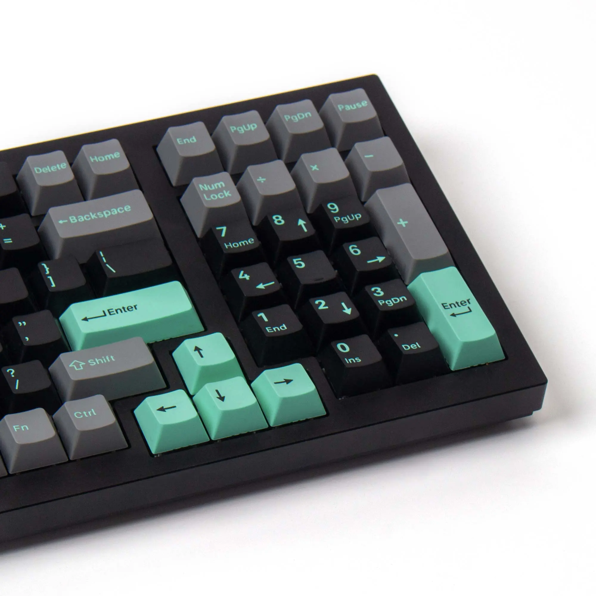 This keycap set comes with a grey and green colorway and it features double-shot legends to provide a comfortable typing experience. This set can be used for both gaming and typing purposes.